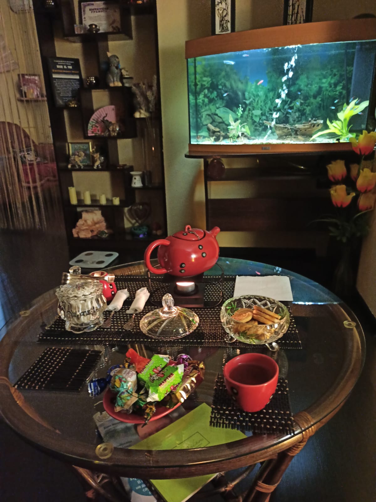 Мой драгоценный муж разделил подарок со мной пополам. Я провела час на массаже. У нас был медовый месяц в Тайланде. Поэтому для нашей семьи подобная атмосфера это рай. Ожидаю его. Пью чаёк. Массаж делают тайки. Круто :)